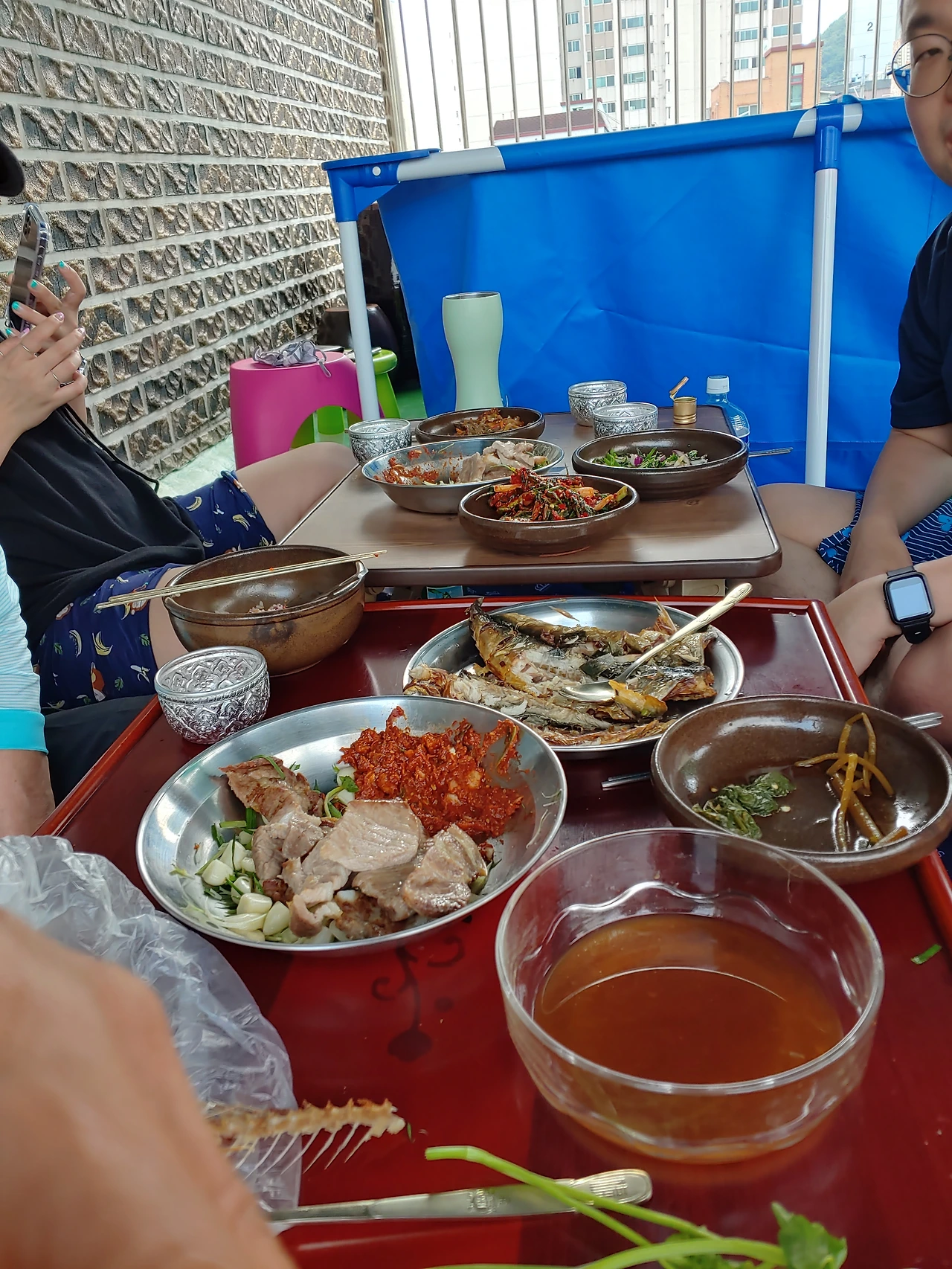 집 옥상에 수영장 설치하고 가족끼리 밥 먹기ㅎㅎ