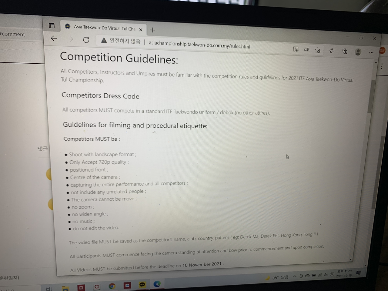 하루의 루틴이 어떻게 되세요, 하면서 감귤 수련자가 물었다. Routine- 내가 반복하는 훈련이란 언제나 똑같다. 스트렛칭을 하고, 사주찌르기 / 막기부터 배운 데까지, 즉 2단의 마지막 틀인 고당 틀까지 훈련하고, 이후 주먹과 발쓰는 연습을 하고, 그리고 시간이 남으면 어려운 틀의 연습을 반복한다. 갑자기 사람이 많아지거나 해서 순서를 바꾸는 경우가 간혹 있긴 하지만(예를 들어, 틀을 할만한 충분한 연습 공간이 나오지 않는다면 구석진 곳에서 반복 발차기 연습을 한다거나) 여간해서는 거르는 법이 없다. 그나마 기초를 꾸준히 한 덕에 겨우겨우 검은 띠도 달고 있는 것이다. 오늘은 콜라 영현 사매가 보 맞서기를 배우길래, 나도 오랜만에 영상을 다시 보고, 3보 맞서기 1번부터 5번부터 같이 손발을 맞춰봤다. 그러고보니 나도 아내가 돌아오기 전에 아시아 대회 영상을 준비해서 제출해야 한다. 신혼여행 다녀와서 바로 2단 띠를 땄으니 벌써 햇수로 4년이 되었는데, 아직도 나는 2단의 마지막 틀인 고당 틀이 아니라 여전히 두번째 틀인지 충장 틀로 대회에 나가고 있다. 고당 틀이 워낙 어려워야 말이지..ㅠㅠ