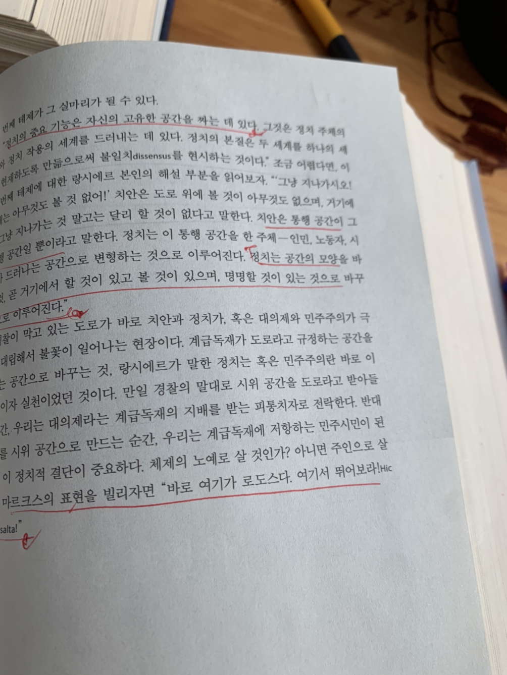 그러므로 대선을 앞두고, 공교롭게도 신/구판의 서양편 마지막 장인 '정치' 에 관한 이야기는 흥미롭다. 강신주 선생은 슈미트와 아감벤을 대치시키면서, 적과 동지로서 구분되는 정치, 또한 정치에 참여하는 이와 배제된 이를 구분하는 정치- 즉, 경계와 배제로서 공포감을 심어주는 정치에 대해 논했다. 지난 정부와 이번 선거에서 유독 다들 느끼겠지만, 대의민주주의는 우리의 뜻을 대변하는 민주주의라고 결코 할 수 없다. 민주주의의 꽃이라던 선거는 인기영합주의 사생활 논란거리로 전락했으며, 랑씨에르의 지적처럼 대의민주주의는 그저 우리가 마음에 들지도 않는 대표자에게 다수의 논리로 우리의 권력을 일정 기간 임대해주는 또다른 형태의 지배에 지나지 않는다. 지금의 대통령 후보들이 생각하는 언어와 사상과 정책이 유권자들에게 심히 동떨어지게 느껴지는 것처럼, 혹은 어느 한 정당에 속하거나 정치에 참여해야만 비로소 사회를 살아갈 자격이 있는듯이 호도하는 것처럼, 현대의 정치는 강압적인 방식으로 스스로를 이해하도록 국민을 몰아넣고 있다.