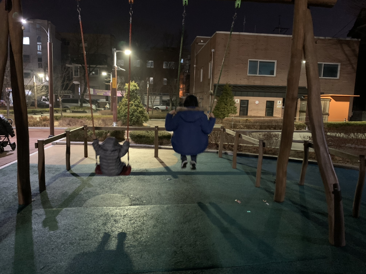 아이는 하루가 다르게 커서 이제 고집이 늘고 활동반경이 넓어졌지만, 서툴게 말도 하려고 노력하려고, 애비에미 말은 진작에 알아듣고 눈치도 빨라져서 한편으로는 편한 점도 있다. 나는 가능한 일찍 일어나 태권도 연습을 하거나 화요일 목요일 저녁에는 도장을 도우며, 그 외의 시간에는 언제나 집에서 처자식과 함께 있는다. 아이의 피부는 정말 좋아져서, 나도 보람을 느끼고, 시간내어 근력 훈련도 할세라, 차라리 근력 훈련이라 여기며 늘 아이의 몸에 닿는 옷들을 직접 손으로 빨고, 설거지하고, 청소하고, 아내가 간식과 옷을 챙겨 나갈 준비를 하면, 늘 밤마다 밖으로 나가 놀이터에서 아이에게 그네를 태우고, 미끄럼틀을 태우고, 시소를 태우고, 같이 길을 걸으며 힘을 쭉쭉 빼놓는다. 아이가 지쳐 늘어져 유모차에 매달리면, 비로소 아내와 나는 아이를 태우고 공원길을 좀 더 돌다가 집으로 돌아온다. 그때쯤 달맞이를 하거나, 내가 쉬는 날 낮부터 나와 계시는 어르신들께서는, 요즘처럼 애도 안 낳고 결혼도 안하는 시기에 애국자네 애국자야, 옳게 된 부부야, 라고 하시지만, 보이기만 그럴 뿐이다.