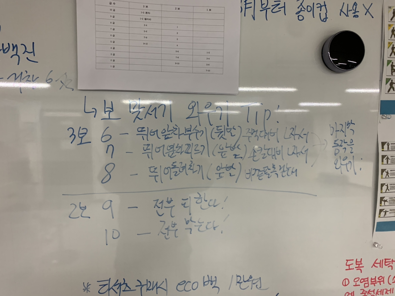 아침에 좀.번잡스러운 일이 있어 도장을 못 갔다. 일은 걱정한만큼.잘 풀리지.않았고, 아내없이 훈련할 수.있는 귀한 시간이.아까워 밤에라도.오늘 갔다. 혼자.빈 도장을.돌며.삼십분간 기본 손발 쓰는.연습을 하고, 나머지 삼십분은 다시 보.맞서기를.연습했다. 막차.끊기기 전에 한.시간, 잘 채워 땀을 뺐다. 밥 잘하는 유진이는 끝내 일찍 퇴근하지 못했다.