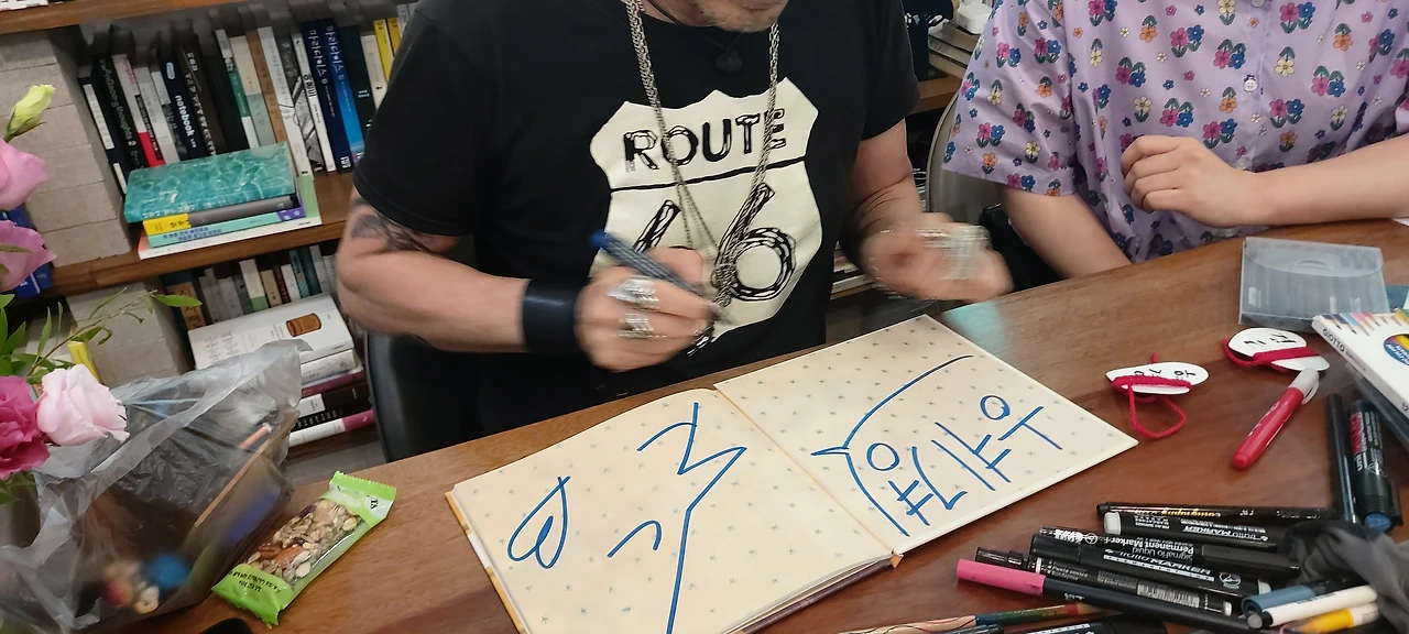 뜻밖의 여행에서 북토크가 19번째라고 한다. 서점 문을 닫는 저녁 7시에 열리기 때문에 그간 보고 싶었던 작가들도 있었지만 식구들 챙기느라 오늘에서야 참가하게 되었다. 그리고 무엇보다 내 그림책테라피에서 두번이나 소개했을 정도로 애정하는 <인생은 지금>의 작가가 아니던가. 그곳에서 그림책 테라피를 진행하며 그 책을 소개하는 걸 보신 사장님이 이번에 다비드 칼리 북토크가 있다고 알려 주셨을때 깜짝 놀랐다. 요즘 내 인생의 화두인 작가의 방문이라니. 사장님도 애정하는 작가였기에 이번 만남을 기적이라 표현하셨다. 이번에 한국에서 새로운 그림책이 나오게 되어 서점 투어를 하고 있는 중에 안양의 작은 서점까지 들러주시다니 이런 일이 또 있을까. 그는 이탈리아 부모님과 스위스에서 자랐다고 한다. 만화를 좋아해 15살이 되던 무렵부터 그림을 그려 자신이 알아본 여러 출판사에 작품을 보내기도 했다고. 출간이 되지는 않았지만 응원을 많이 받았다고 한다. 만화를 좋아하는 사람치고 그의 책들은 어딘지 철학적이고 사색적이다. 나보다 한살 많지만 한세대는 위에 있는 듯한 느낌이었다. 농담을 좋아하고 장난끼가 많아 보이는 그 안에 어떤 생각이 들어있을지 궁금했다. 사람들은 <나는 기다립니다..> 같은 책을 좋아해 그 빨간끈은 무엇을 뜻하는지 궁금해 했다. 전에 읽었을 때 그 책은 감성이 무척 좋다고 생각했는데 같은 작가의 것인줄 모르고 있었다. 아무래도 이 작가의 책을 좀 모아봐야겠다. 북토크를 하고 좀 더 이 작가가 좋아졌다. 그가 처음 작업을 하게 되었던 프랑스에서의 기억을 이야기해주었는데 그곳에서 놀란 것은 소재나 주제나 스타일, 기법 등이 상상을 초월할 정도로 자유로웠다는 것이다. 역시 프랑스인가 하는 생각이 들었다. 그곳에서 그는 얼마나 흥미진진했을까. 그는 보드게임도 만들고 작가들을 소개하는 기획물도 쓰고 있다고 한다. 무척이나 바쁘게 사는 것 같았다. 바쁘다면 그런 식으로 바쁜게 행복하지 않을까 하는 생각이 들었다. 그림책 작가의 삶이란 내가 동경할만한 것이었다. 나의 상상력은 너무 빈약해서 쓸모가 없을 것 같지만 말이다. 좋아하는 작가의 북토크가 주는 설레임이란 이런 것이구나 하는 생각이 들었다. 좋은 프로그램이 있다면 앞으로 자주 참석해야겠다는 생각이 들었다. 나에게 영감을 주고 에너지를 주는 듯한 느낌이었다. 열손가락에 모두 기괴한 반지를 끼고 손톱을 검은색 매니큐어를 칠한 그런 사람을 내가 좋아하게 될 거라고 생각지 않았는데 외모보다는 내면일까 ㅋㅋ 오늘은 에세이도 읽고 좋아하는 작가와의 만남도 가지고 여러모로 산책을 대신해 힐링이 되는 하루였다. 매일 오늘만 같았으면... 나는 또 행복해질 궁리를 해야겠다. 매일매일...