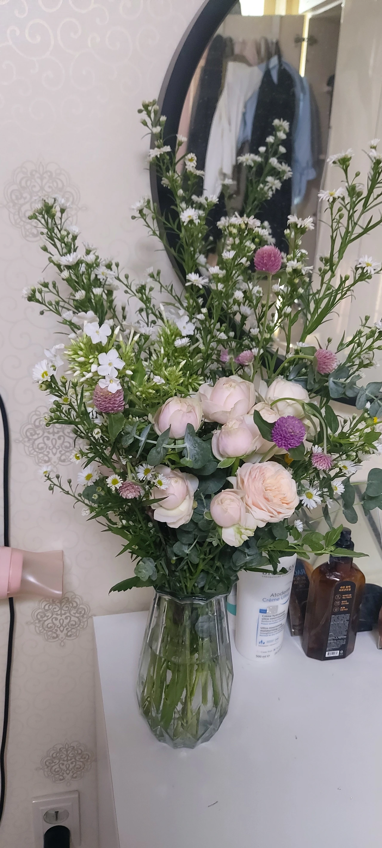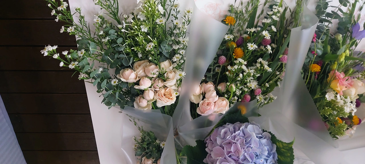 그림책 테라피 회원 중에 플로리스트가 직업인 멜리아라는 이름의 회원이 있다. 그녀의 제안으로 테라피 회원 몇명이서 양재동 꽃시장엘 다녀왔다. 처음 발을 딛는 순간부터 그 어떤 향수보다 좋은 향기가 온몸을 휘감았다. 우린 모두 마법에 걸린 듯 홀려서 꽃시장을 누비고 다녔다. 각자 마음에 드는 꽃이 모두 다르다는 것을 알았고 집 앞 꽃집보다 열배는 더 싸다는 것도 알게 되었다. 처음 눈에 띄여 산 꽃이 장미라는 걸 몰랐다. 레넌큘러스 같기도 했다. 그런데 아모르 라는 종의 장미였다. 그리고 유칼립투스와 개망초 비슷한 꽃을 사고 멜리아의 권유로 수국도 샀다. 평소에 수국을 좋아하지만 값이 비싸 주저했는데 커다란 꽃 한송이에 4천원이라는 걸 알고 망설임없이 사버렸다. 꽃이름을 아는 것도 즐거움 중 하나였고 이름을 모르는 꽃은 들꽃 같은 것들이 많았다. 우린 모두 설레고 행복해져 오래고 그곳에 남고 싶었지만 꽃시장이 12시에 문을 닫는다고 하여 황급히 꽃을 사고 약속장소에 가서 소분하여 각자의 꽃다발을 만들었다. 화병도 너무 싸서 세개나 사버렸는데 집에 오니 한개 더 살걸 하는 생각이 들었다. 나민애 교수님께도 드리고 싶은데 다음 주 수업이 없는 날이라 아쉬웠다. 꽃의 시인을 아버지로 둔 교수님께 정말 드리고 싶은데 말이다. 멜리아도 그 생각을 했다고 한다. 여튼 아쉽다. 멜리아를 비롯한 회원들은 내가 이렇게 행복해 보이고 웃음을 보이는 일을 본 적이 없다고 한다. 물론 내가 꽃을 좋아하지만 사람이라면 모두 꽃을 좋아하지 않나? 당연한 것 아닌가? 하는 생각이 들었다. 꽃다발을 만들면서도 멜리아는 자꾸 나에게 "행복하지?" 라고 물었다. 왜냐하면 내가 너무 행복해 보였기 때문이라나. 그렇구나. 나는 정말 꽃을 좋아하는 구나. 새삼 그런 생각이 들었다. 하지만 꽃이 너무 비쌌다면 이렇게 까지 무장해제되지는 않았을 텐데 커다란 화병 두 개와 작은 화병 두개에 나눠 담을 만큼 많은 꽃을 샀는데 2만원 정도라니. 멜리아는 아무나 이곳을 가르쳐 주지 않는다며 다른 사람에게 말하지 말라고 한다. 전문가인 만큼 상인들이 그녀를 모두 알아보았다. 오랜만에 왔다고 하는 곳도 있었고 꽃을 더 얹져 주기도 했다. 꽃다발을 다 만들고 집으로 향하면서 그림책테라피 선생님과 정말 힐링된다며 종종 기회를 만들어야 겠다는 이야기를 했다. 사람으로 받은 상처를 꽃이 치유해 주는 가보다. 집에서 가까운 거리는 아니지만 전혀 멀게 느껴지지 않았다. 이 세상에 나를 치유해 줄 수 있는 것들이 존재한다는 것에 감사한 마음이 들었다. 나는 꽃에게 아무것도 해주지 않았지만 그럼에도 나를 행복하게 만들어 주는 것. 꽃 자체가 사랑이 아닐까 하는 생각이 들었다. 꽃은 기적이자 행복 그 자체인 것 같다.