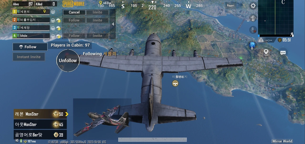 처음에 이렇게 비행기를 타고 가다 서바이벌 장소로 낙하를 합니다.(이미지 출처 내 핸드폰)