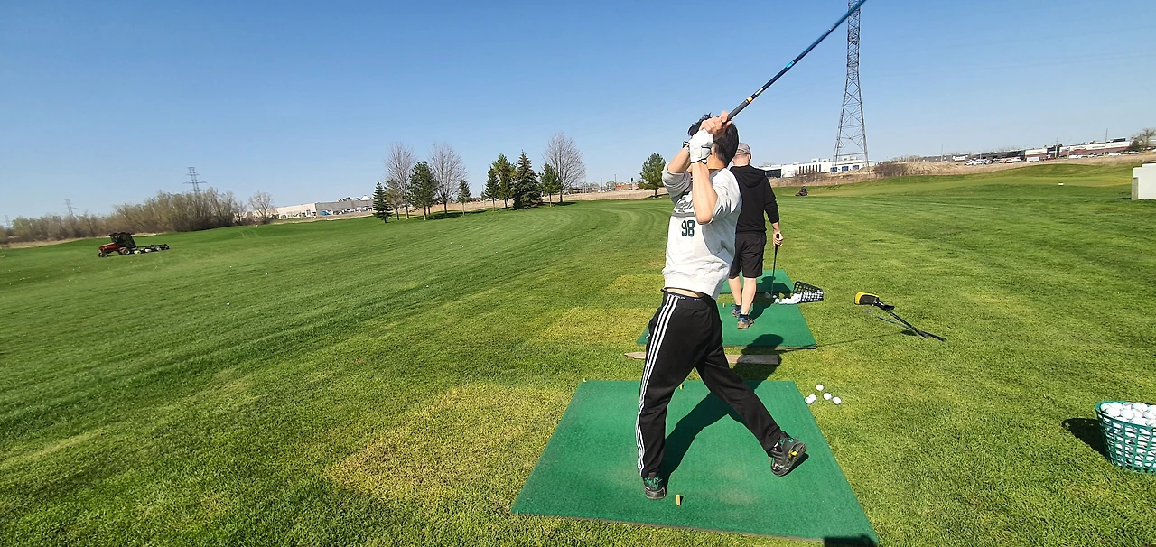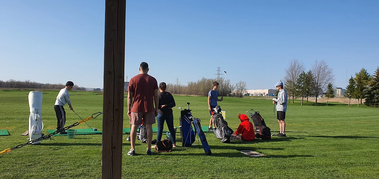 연습장의 분위기는 꽤 자유롭답니다. 우리나라처럼 골프웨어와 골프클럽에 힘이 빡 들어 있지 않아요. 골프 클럽 케이스를 보니 우리나라에서 대부분 저렴(?)하게 판매하는 디자인들이더라고요. 우리나라에서는 골프 연습장에 가면 신경 쓰이는 게 많았어요. 머리부터 발끝까지, 모자, 장갑, 골프웨어, 골프 신발, 골프채와 가방 등등 워낙 잘 차려입고 오는 분들이 많아서 대충 티셔츠에 반바지를 입고 가는 저는 어쩐지 주눅이 들더라고요. 캐나다는 복장도 신발도 자유롭고, 매트 하나를 빌려 여러명이 돌아가며 사용하기도 하더라고요. 특히 젊은 사람들이 삼삼오오 와서 자유롭게 연습하고 가는 모습도 눈에 띄었어요.