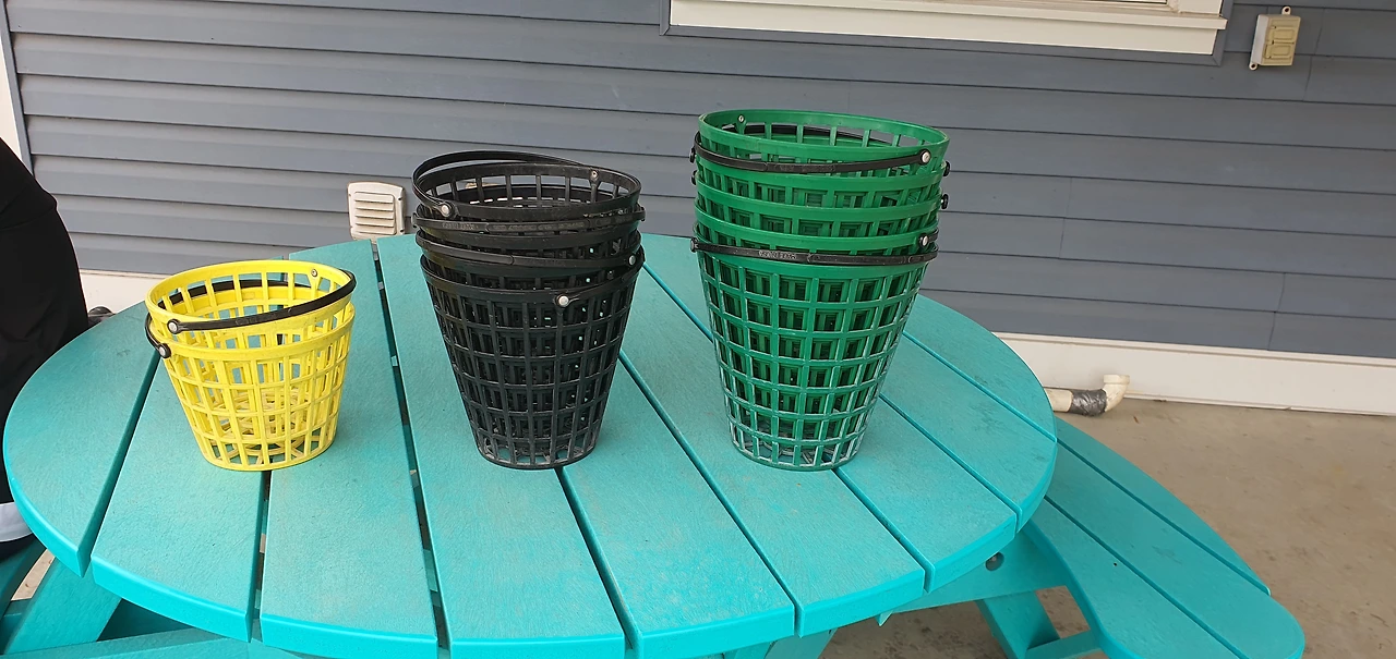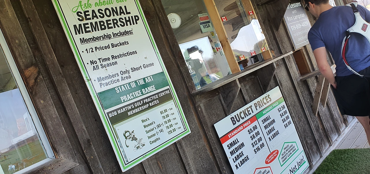 캐나다 골프장은 우리나라의 최신 기계식 골프장과 아주 달라요. 아날로그 감성이 물씬 풍기지요. 연습장 이용료는 따로 받지 않고 연습용 공을 담은 바구니의 사이즈에 따라 요금제가 책정되어 있어요. 작은 바구니는 5불, 중간은 8불, 큰 건 12불, 제일 큰 건 16불입니다. (캐나다 1달러=1,000원)