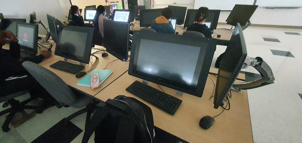 목요일은 오전 9시부터 수업이 총 2개가 있다. 남편의 수업 시간이 나보다 늦기 때문에 이 날은 남편이 나를 학교로 데려다주었다. 다운타운 캠퍼스 건물은 입구는 물론 강의실에 들어갈 때도 학생증을 찍어야 문이 열린다. 아마도 다운타운에 노숙자가 많기 때문 인 듯하다. 이 건물에서 컴퓨터 관련 전공 강의가 열리기 때문에 강의실마다 애플 컴퓨터나 일러스트레이션 태블릿 등 값비싼 장비가 많다. 그나저나 애플 데스크톱 디자인이 너무 예쁘다.