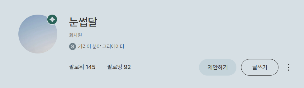 지금까지 내가 쓴 글을 보면 일상 에세이가 주였다. 초기에는 육아와 일상 이야기를 썼다면 이후에는 직장생활과 일상에 대한 이야기를 좀 더 써왔다. 아마도 최근 몇 달간 직장생활에 대한 글을 좀 더 쓴 것이 커리어 분야로 선정되는데 영향을 준 것이 아닌가 싶다.