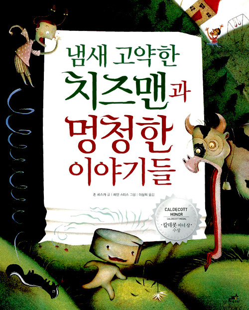 "세계적인 그림책 이론가들이 뽑은 포스트모던 그림책의 대표작!"이라고 당당하게 쓰여 있는 <냄새 고약한 치즈맨과 멍청한 이야기들>입니다. 온갖 명작동화 이야기들이 섞여 들여가며 패러디의 진수를 보여주는데요. 포스트모던 그림책의 대표작답게 타이포그라피를 자유자재로 활용합니다. 차례가 무너져 문장 순서가 엉망이 되는 것부터 시작, 토끼의 머리카락이 쭉 자라는 것의 이미지와 "끝없이 쭉"이라는 텍스트를 한데 엮은 것도, 거인의 발에 눌린 이야기가 찌그러진 것처럼 그려진 것 역시 모두 타이포그래피를 활용한 것이라 할 수 있습니다. 타이포그래피 덕에 이야기에 내포된 정서가 보다 효과적으로 전달됨을 느낄 수 있습니다.