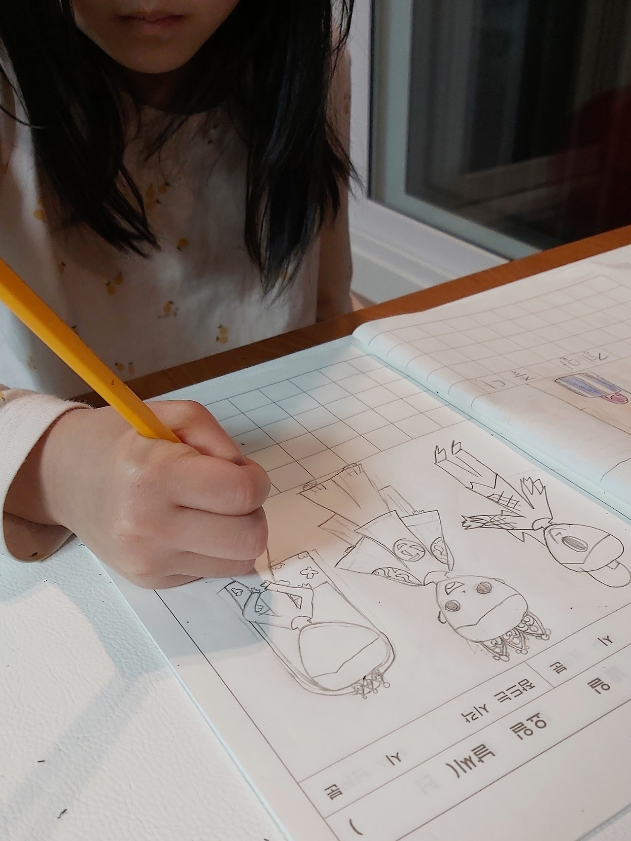 우리가 할 수 있는 가장 단단한 것을 하자. 일주일에 한 번, 식탁에 모여 각자 읽거나 그리거나 쓰는 시간. 그날 큰연꽃은 이사 준비를 주제로 일기를 쓰겠다 했고, 작은연꽃은 책 속 주인공들을 그려보겠단다. 우유를 따르고 찻물을 끓이고 초에 불을 켜고 물소리 ASMR을 켤게. 각자의 일기장을 들고 만나자, 우리의 마음을 정박시킬 수 있는 단단한 책상 위에서.