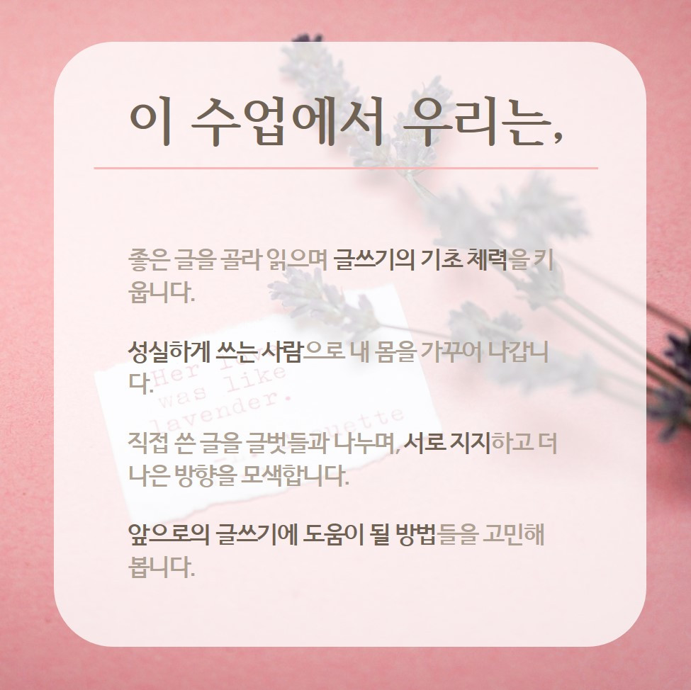 글쓰기는 나에게서 끝나지 않습니다. 나에게서 시작한 선은 희미하게 너에게로, 세계에게로, 독자에게로 뻗어갑니다. 저와 글벗들이 다정한 독자가 되어줄 것입니다.