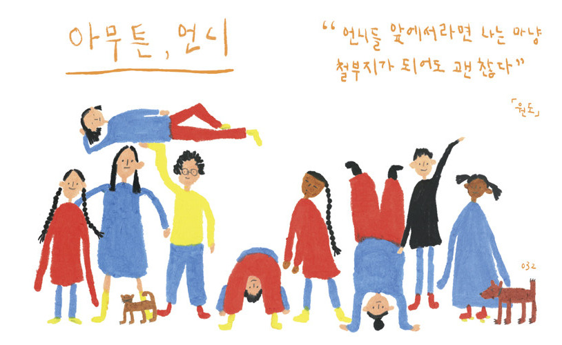 약간 취기가 오른 채, 나는 큰 소리로 언니를 불렀다. 언니 한 잔 드릴게요. 언니 이거 드세요. 언니 고마워요. 나는 정말로 고마웠다. 나도 저런 얼굴로 나이 들고 싶다는 생각을 하게 되었으니까. 좋아하는 걸 해서 눈이 반짝반짝한 사람으로. 매일 아침이면 운동복을 갈아입고 갈 곳이 있어 행복한 사람으로. 언니들은 내게 20년 후를 꿈꾸게 해주었다. 언니라고 못 부를 이유가 없었다.
