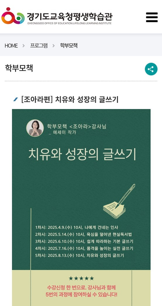 경기도교육청 평생학습관에서 진행하는 2025 학부모책에 선정이 되었습니다. 학부모책 이름에 걸맞게 그간의 경험과 사례들을 가득 챙겨 여러분을 만나 뵈려고 합니다. 겉치레 없이 실속을 잔뜩 담아.
