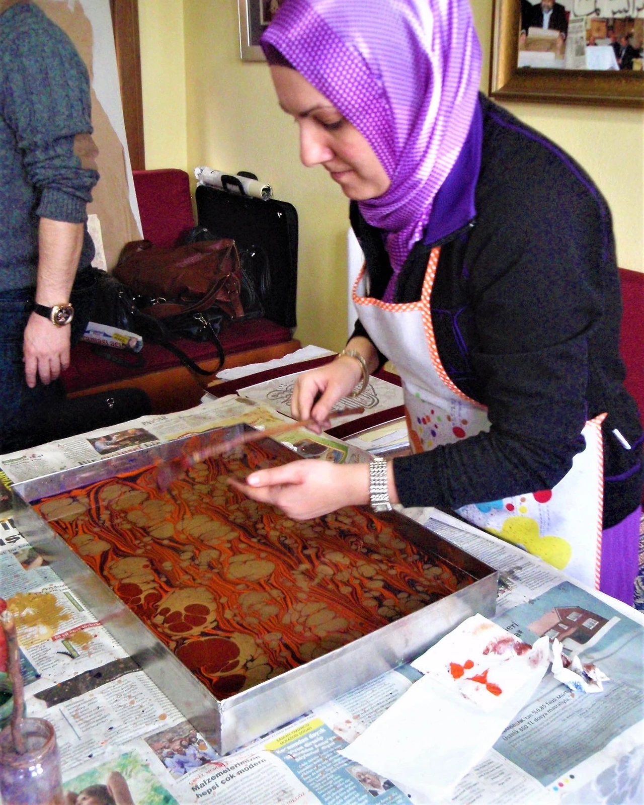 그리고 터키에서 내가 실제 본 이미지들. 히잡을 쓴 여자들이 물 위에 그림을 그리고 있었는데 그녀들이 붓을 톡톡-칠 때마다 잉크가 떨어지며 색과 형태가 만들어지던 그 모습. (그녀들은 자신들이 하는 걸 ebru art라고 했다) 물이라는 캔버스에 여기저기 흩어져 있던 잉크 점들. 또 다른 하나는 골무 같은 기다란 모자를 쓰고 치마폭이 아주 넓은 하얀 옷을 입고 빙글빙글 돌던 사람들. 그들은 누군가 그만하라고 하지 않으면 영원히 그러고 있을 것만 같았는데 타인에게 보이기 위한 공연이라기보다 본인 스스로가 거기에 푹 빠져서 일종의 희열 같은 상태에 가 있는 듯 보였다. 나는 한 시간 여 동안 그 모습을 보면서 정신이 취한 것처럼 함께 돌고 있는 거 같았다. 여기가 어딘지, 내가 다음에 뭘 할 건지 그런 것들이 아무것도 생각나지 않는 텅 빈 순간들의 연속이 꽤 길었던 것 같다. 남자들은 일층, 여자는 이층에서 관람할 수 있어서 나는 이층 난간에 자리를 잡고 그 모습을 내려다봤는데 좀처럼 끝이 나지 않을 것처럼 끊임없이 이어지는 동심원 물결, 그 환상적인 이미지가 떠올랐다. 남자들도 이층에서 같이 보면 더 좋을 텐데.. 이 물결을 한눈에 다 담을 수 있는 이층이 확실히 vip석 같았다.