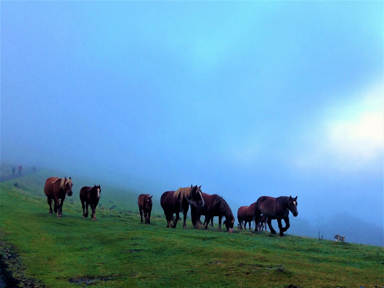 길의 풍경이 비슷해 지루할 때도 있지만 지나고 사진으로 보면 그런대로 각기 특징을 가지고 있어 흥미롭기도 하다. 구름의 모양도, 나무 종류도 다 다르고, 같은 종의 동물도 지역마다 또 특색이 있다. 무엇보다 주변을 붉게 물들이며 해가 뜨고, 지는 풍경은 언제 보아도 감탄할 만큼 멋있다. 안개가 짙게 낀 피레네 산맥 길에서는 어디선가 짠하고 나타난 한 무리의 말들이 옆을 스쳐 지나갔는데 안개 때문인지 그 광경 자체가 꿈을 꾸고 있는 듯.. 마치 신화 속 한 장면처럼 신비로웠다. 그리고 길에서는 소, 말, 닭, 양, 고양이, 개, 당나귀, 곤충, 새 등 온갖 동물 친구들, 그리고 그들이 배설한 결과물을 수시로 만나게 된다. 가끔 동물들과 적극적으로 대화를 시도하는 사람들이 있었는데 동물도 그런 사람들을 알아보는지 그들의 손길에는 유독 얌전했다.