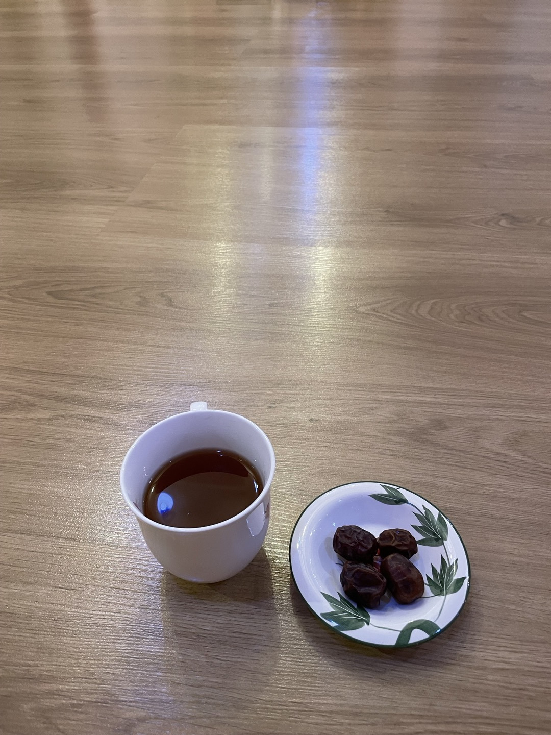 차이와 함께 대추야자를 내어 주셨는데 그걸 오물조물 음미하며 이 말을 들었어요. 대추야자는 이슬람에서 라마단이 끝날 때 시작의 의미로 먹었다고 해요. 제 접시에 올려진 걸 다 먹고 나니 씨앗이 네 개가 생겼어요.