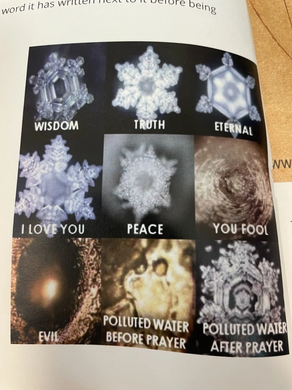 우리가 가진 의도, 감정에 따라 물 결정체가 달라지는데 이건 볼 때마다 신기해요. 저도 어릴 때 어디선가 몇 번 봤는데 19년 즈음 싱잉볼 선생님이 사진으로 보여주시길래 새삼 또 보면서 아. 했습니다. 이번에 치앙마이에 가니 또 한 번 언급하시대요.ㅎㅎ