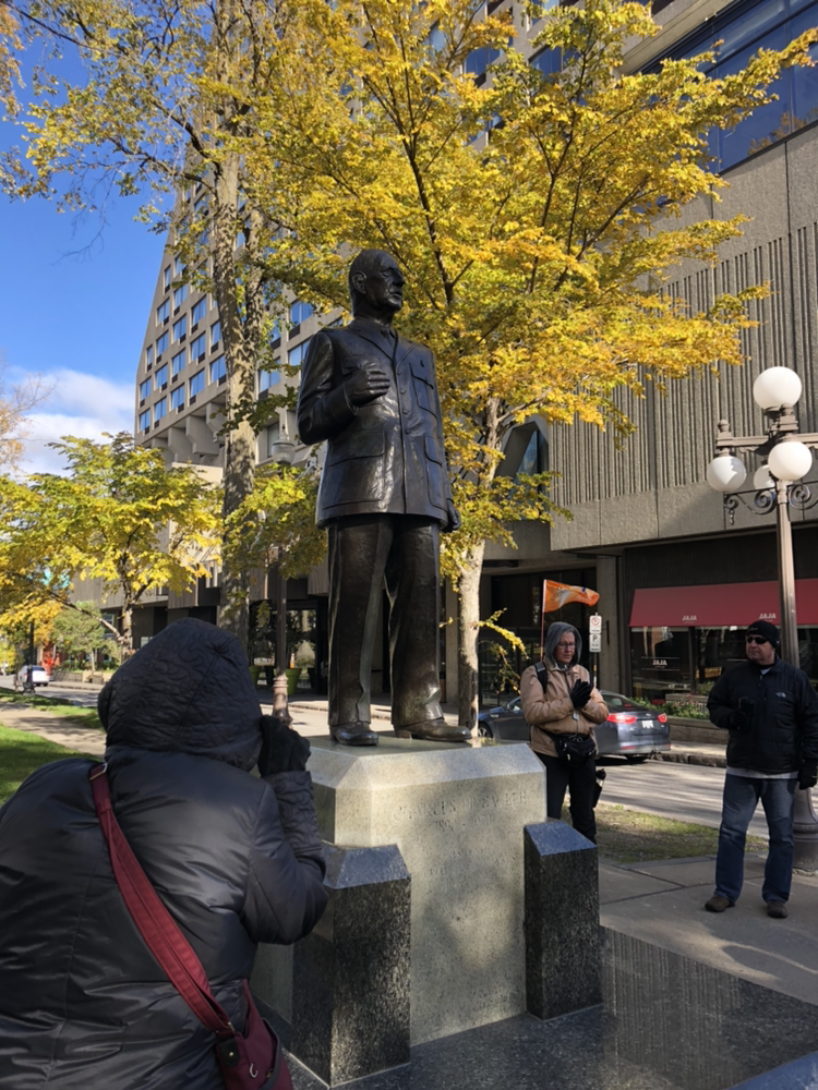* 전장 공원, 현재는 아브라함 평원이 너무나도 평화롭고 아름답게 펼쳐져 있지만 이곳은 과거 영국군과 프랑스군이 치열하게 전투하여 많은 이들이 전사한 곳이기도 하다. 우측은 프랑스 샤를 드골 대통령이다. 갑자기 그가 왜 여기?라고 할 수 있겠으나, 1967년 그는 캐나다를 기습 방문하여 '자유 퀘벡 만세'라고 외치면서 캐나다 측엔 적잖은 파문을 일으키고 돌아갔으나 퀘벡의 프랑스인들의 가슴엔 불을 활활 타오르게 하고 가셨기에.. 기념비도 이렇게 있다.