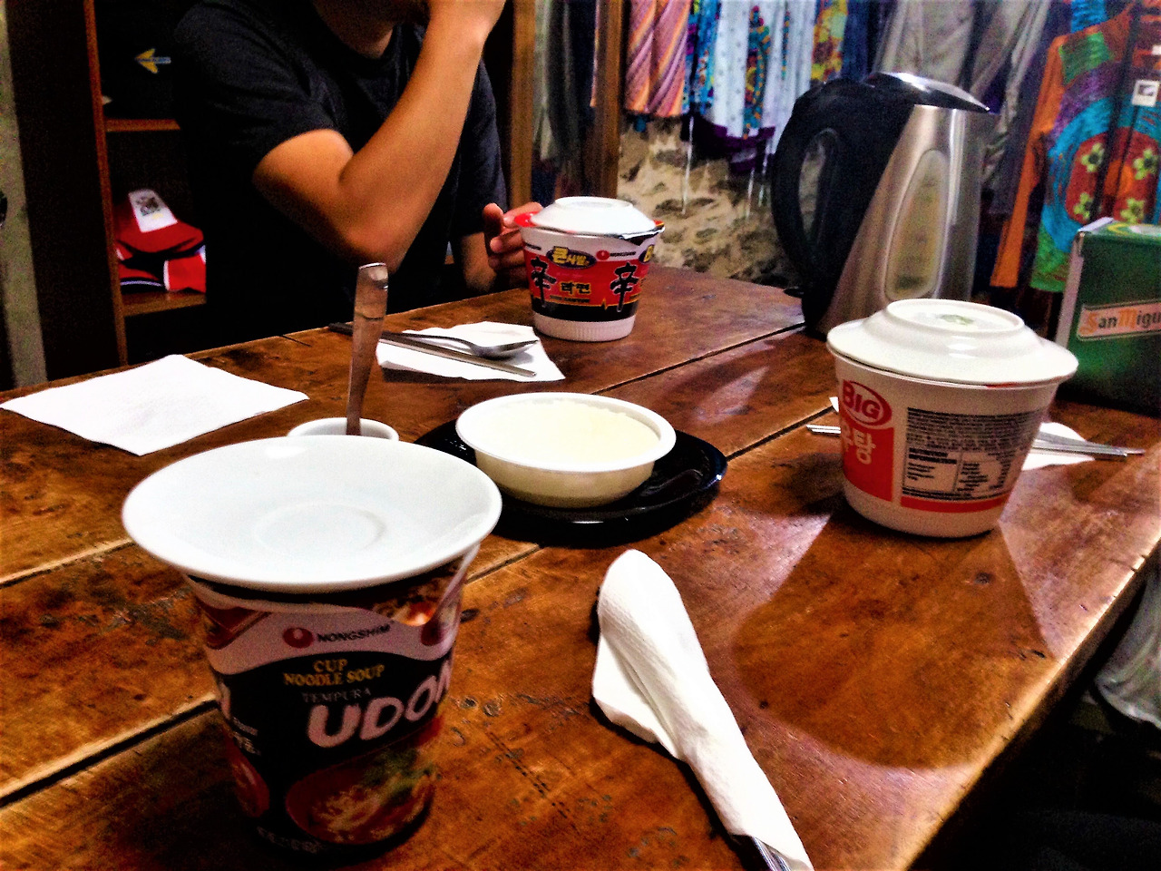 평소 같으면 나중에 어떤 일이 생길지 모르니... 하며 자신을 위해 아껴놓을 것들을 선뜻 꺼내 놓을 수 있다. 나에겐 '신라면'과 '너구리'가 그러했고, 아프면 붙이려고 들고 갔던 '휴족시간'도 그중 하나였다. 한국 음식을 꼭 먹겠다는 생각이 별로 없는, 아무거나 잘 먹는 편인 나에게도 하나씩밖에 챙기지 않았던 신라면과 너구리는 소중한 비상식량이었다. 말 그대로 비상시에 먹으려고 가방 한 구석에 소중히 품고 다녔지만 여정 초반에 만난, 더 절실해 보이는 동생에게 과감히 주었다. 이후에 중국 슈퍼에서 라면을 살 기회가 있었지만 어찌 된 영문인지 그 라면들이 내 입으로 들어가는 경우는 거의 없었다. 대신 라면 파는 식당과 기념품 가게? 에서 몇 번 맛볼 기회가 있었으니 그리 서운할 일은 아니었다. '휴족시간'도 피레네를 넘고 난 후 론세바예스에서 나이팅게일이나 된 마냥 이 사람 저 사람 붙여주고 다녀서 정작 나중에 내가 쓰려고 보니 몇 장 남아 있지 않았다. 아빠 협찬의 등산용 스틱도 '피레네 산맥 넘을 때'는 무슨 자심 감이었는지... 다른 사람을 주고 나는 그냥 넘었다. 내가 나눈 것들은 이렇게 '갖은 생색을 다 내며' 떠올려 봐도 얼마 되지 않겠지만 반대로 받은 것은 대충 생각해도 벌써 수십 가지다.