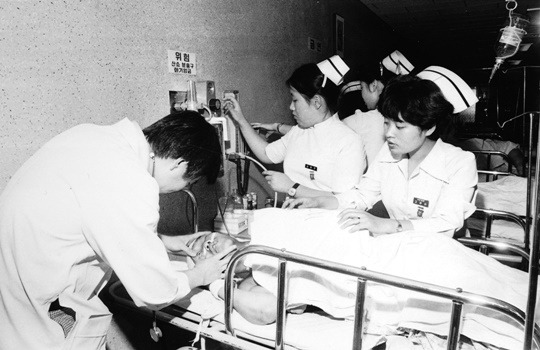 당시 응급실은 긴박하게 돌아갔다. 학생과 차들이 한꺼번에 환자를 데려오는 바람에 중환자의 경우 일일이 신원을 확인할 수도 없었다. 나는 수간호사에게 ‘NS(신경외과)’, ‘OS(정형외과)’ 등 과명을 종이에 써서 환자 가슴에 붙이라고 했다. 이를 통해 각 과에서 내려와 환자를 데리고 갔고, 그 곳에서 필요한 촬영을 한 뒤 수술실로 옮겼다. 갑자기 밀려드는 환자로 인해 간호 인력이 부족하자 감독을 통해 각 병동에는 기본 인력만 남겨두고 모두 모이도록 했다.