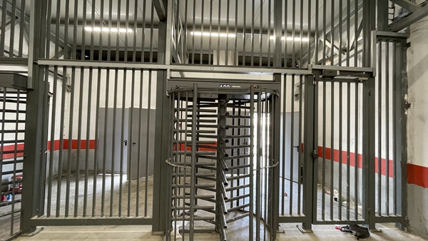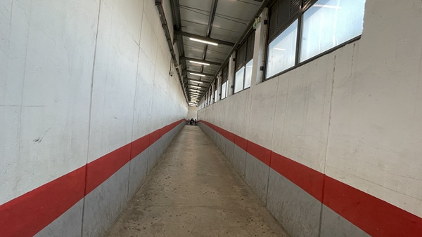 한 명밖에 통과할 수 없는 철로 만들어진 보안회전문을 통과하면 L자형의 경로로 만들어진 통로가 15~20미터 가량 이어졌다. 시멘트 바닥 위로 벽의 회색 페인트는 먼지와 검은 얼룩이 있었고, 다시 붉은 페인트가 통로 끝까지 이어져 있었다. 층높이가 높고 진행하는 방향의 오른쪽에 설치된 창문들은 복도를 이어지며 설치돼 있었지만 잠겨있었다. 통로를 지나면 넓은 대기 공간이 있었고, 여기에서 두 번째 보안회전문을 지나야 검문소 300을 마침내 통과하게 된다.