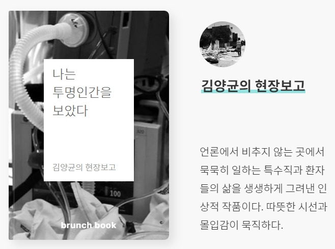 후에 공모작이 2500편이었음을 알게 되었다. 대상 10편과 특별상 5편, 총 15편이 선정되었다. 내 브런치북 <나는 투명인간을 보았다>가 치열한 경쟁률을 뚫고 이 안에 포함된 것이다. 2019년 12월 30일 브런치 공식 발표에서 접한 심사평을 보니 그제야 수상 사실이 실감나기 시작했다.