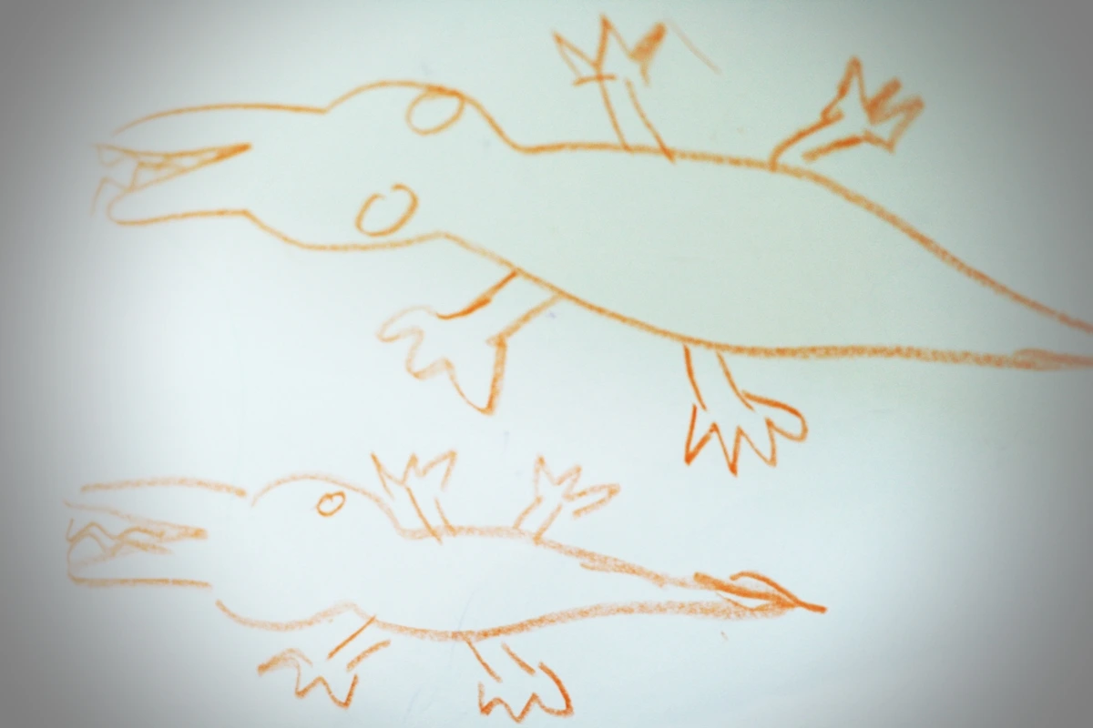 글에 집어넣을 사진을 고르던 중 유민이의 악어 그림이 살아 움직였다. 주황색 악어가 점차 살이 붙고 단단한 외피를 갖추더니 살아 꿈틀거렸다. 마침내 사진을 뚫고 나온 바다악어는 나를 흘깃 쳐다보다 한강으로 풍덩 헤엄쳐 사라졌다. 문득 유민이의 말이 떠올랐다.