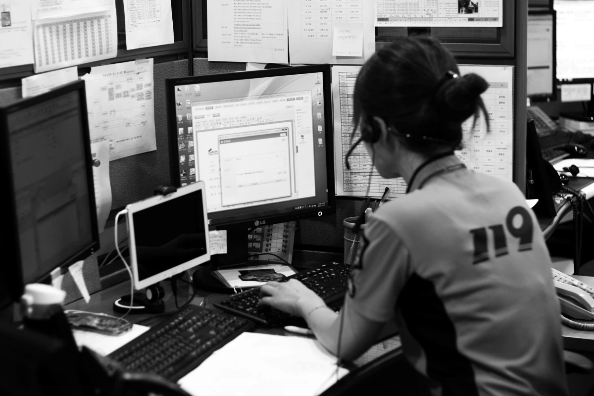 폭풍 같은 통화. ㄱ소방사가 휴 한숨을 쉬었다. 오전 9시~오후 6시에만 이런 구급신고가 30건이 넘고, 오후 6시~오전 9시에는 40~50건의 신고 전화가 밀려들어온다. 서울종합방재센터 119구급상황관리센터의 일상은 늘 생사를 오가는 이들의 연락으로 시작되고 끝이 났다.