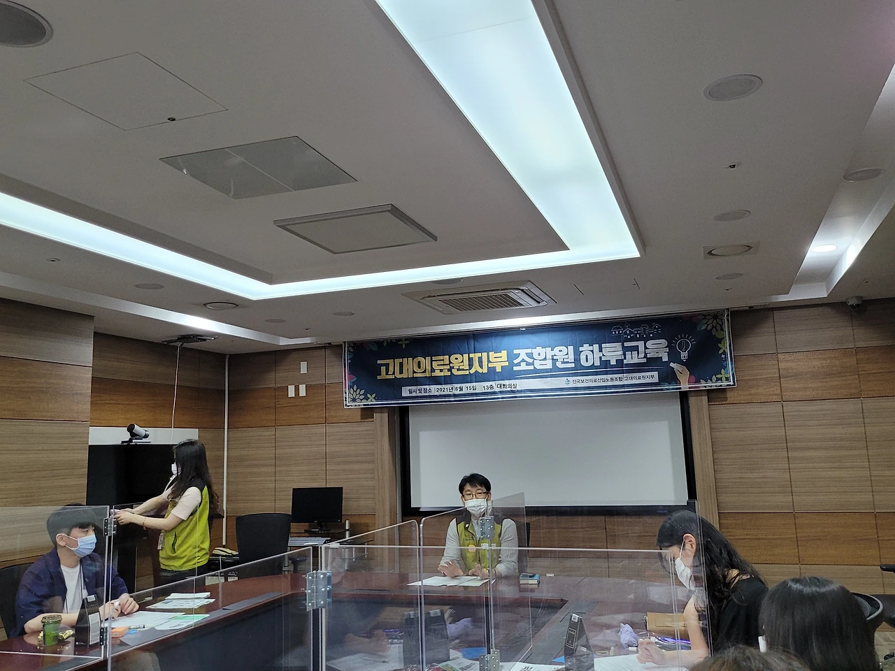 오늘 고대안산병원 본관 13층 대회의실에서 보건의료노조 고대의료원지부 조합원을 대상으로 하루교육이 진행되었다. 하루교육은 1년에 1일 8시간 동안 조합원 누구나 공가로 참여할 수 있도록 단체 협약에 명시 되어있다.