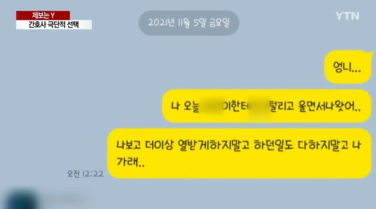 첫 번째 소식입니다. 지난 11월 16일 경기도 의정부의 대학병원 기숙사에서 7개월 차 24살 간호사 A씨가 숨진 채 발견되었습니다. A씨는 숨지기 전 마지막 순간까지도 업무 스트레스를 하소연한 것으로 알려졌습니다. YTN의 인터뷰에 따르면 유가족들은 병원 측의 진상조사와 별개로 국민청원을 통해 피해의 진상을 밝히고 괴롭힘 주동자들을 형사 고소할 예정이라고 전했습니다.