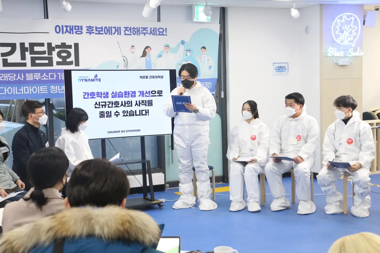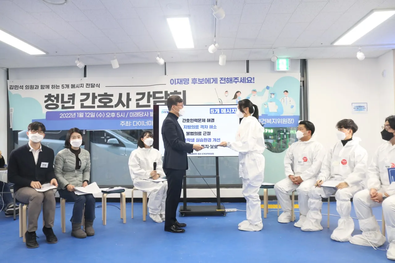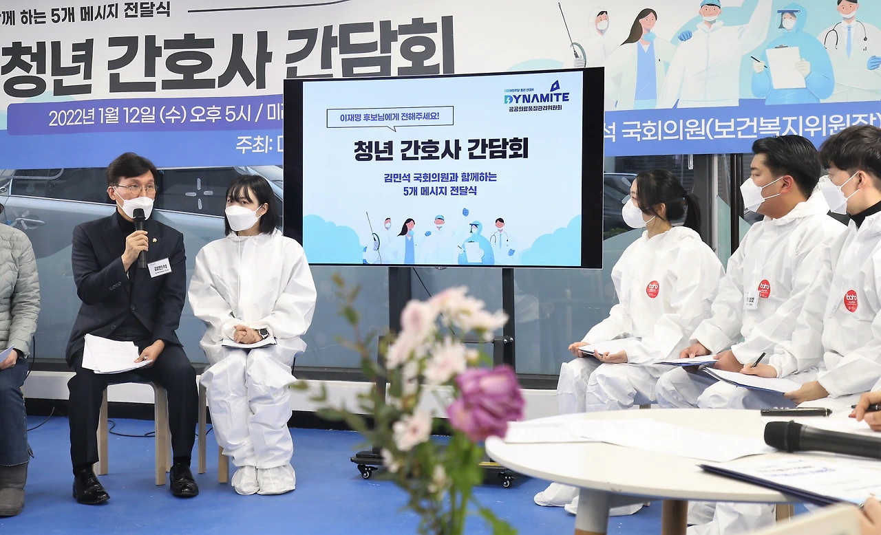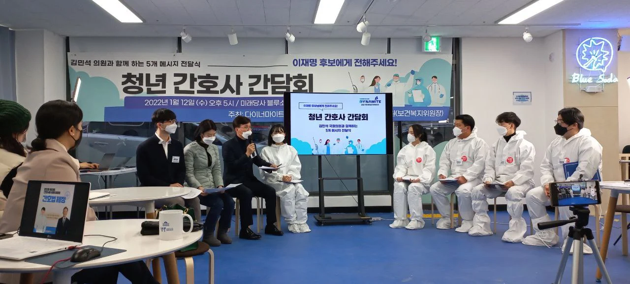 2022년 1월 12일 수요일 더불어민주당 미래당사 블루소다에서 다이너마이트 청년선대위 미래정부단 산하 공공의료품질관리위원회가 <청년 간호사 간담회>를 개최했습니다.