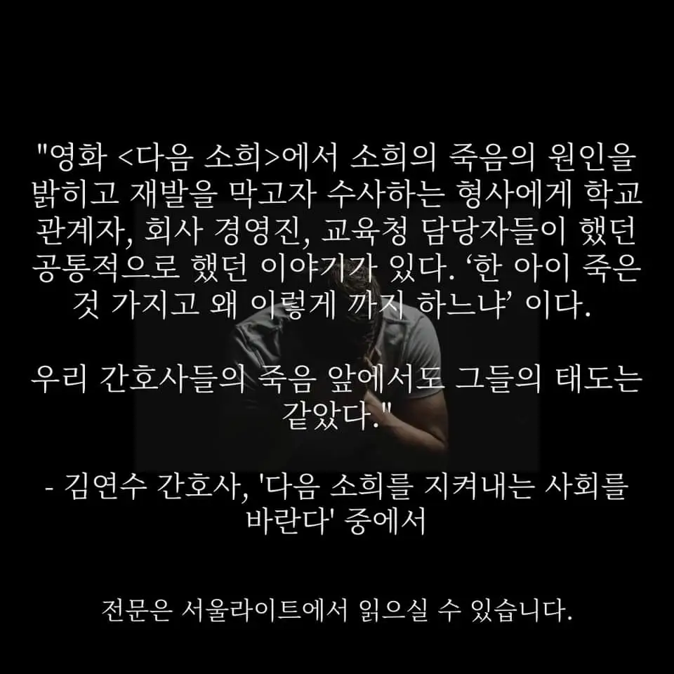 저는 첫 글로 '다음 소희를 지켜내는 사회를 바란다' 라는 제목으로 간호사의 노동환경에 대한 글을 썼습니다. 최근 보건복지부와 교육부가 추진하고 있는 간호학과 2년제 학사편입 제도, PA간호사 문제, 신규간호사교육문제, 임산부 간호사 노동환경 등에 대한 의견을 담았습니다.