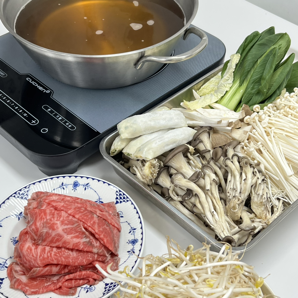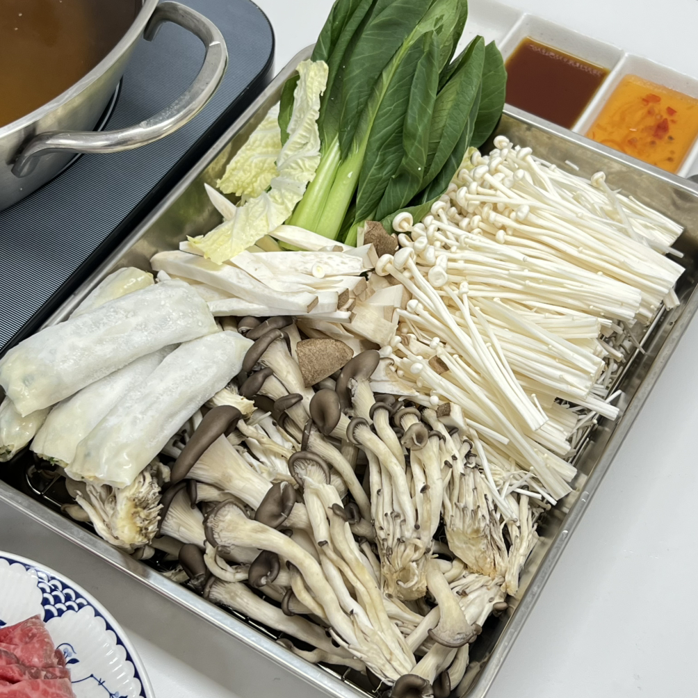 꼭 들어가야 하는 채소는 알배추나 청경채, 숙주예요. 요즘 알배추가 비싸서 샤부샤부용 꾸러미를 산답니다.(봄에는 미나리도 곁들이면 향이 너무 좋고 맛있어요.)