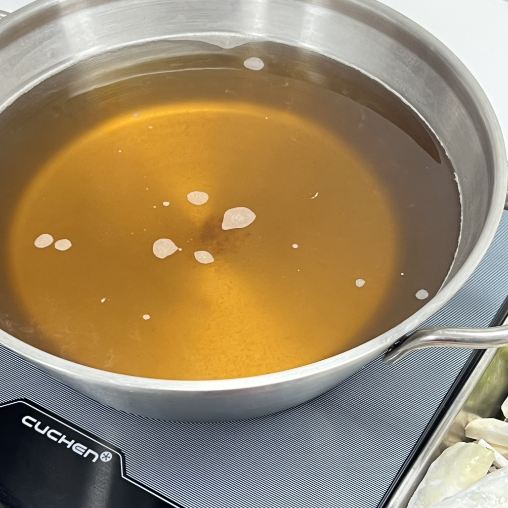 육수는 미리 다시마육수를 만들어도 좋지만 시간이 부족하면 쯔유와 코인육수를 넣고 넉넉하게 3리터 끓여 냅니다. 간은 약간 심심하게 해 주세요. 끓으면서 간이 맞춰져요. (쯔유 대신 시판 우동다시도 좋습니다.)