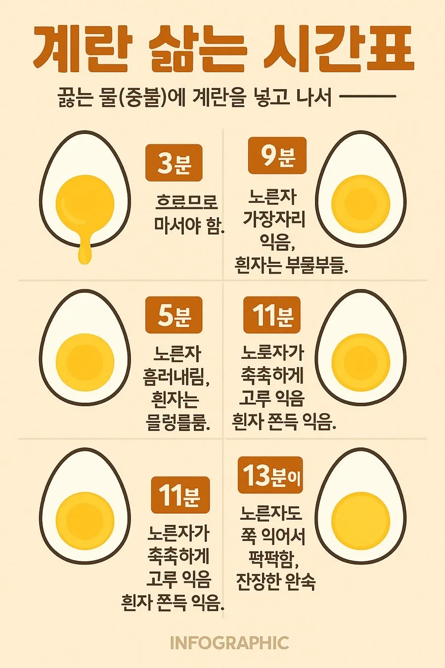 위는 제가 오래도록 써온 계란 삶는 시간표예요.