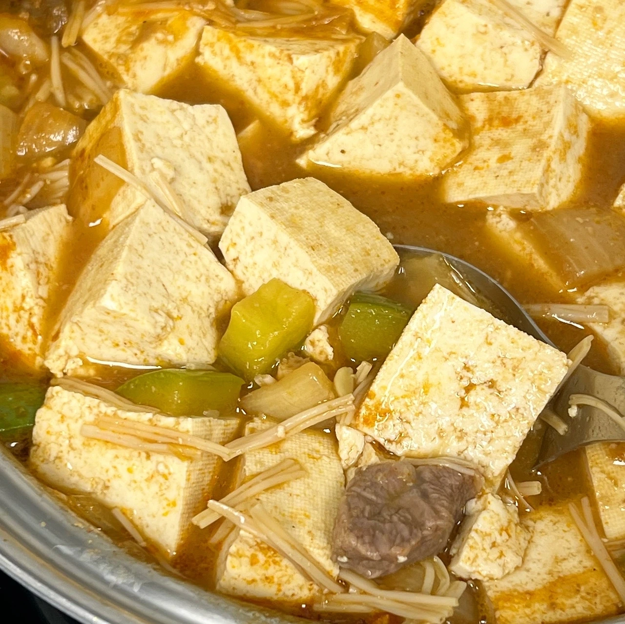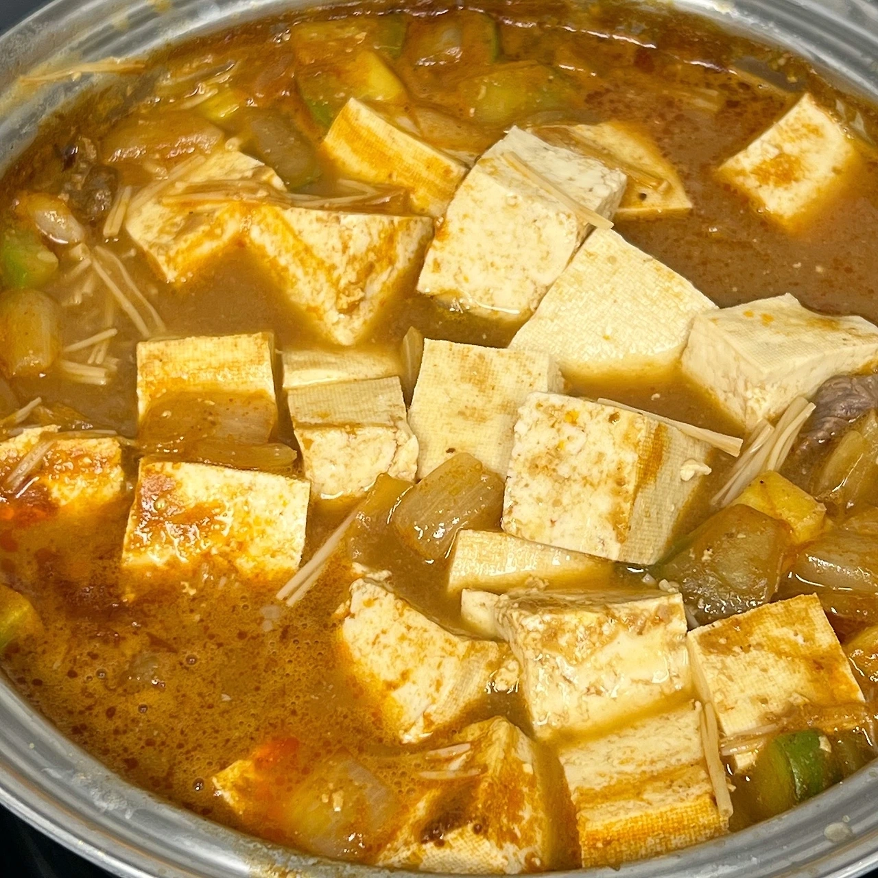 두부러버들이 있어 500g 두부 한 팩을 몽땅 넣어 끓여도 한 끼에 다 끝나는 된장찌개! 두부는 된장찌개에 넣을 때 제일 맛있는 것 같아요.