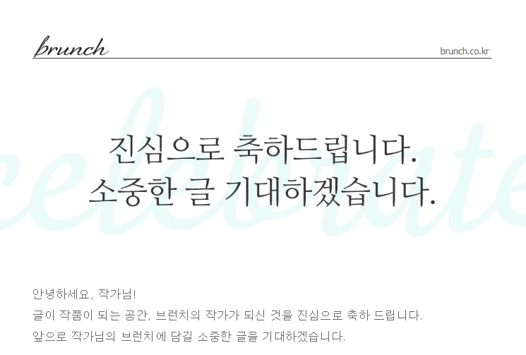 ‘브런치 작가가 되신 것을 진심으로 축하드립니다.’