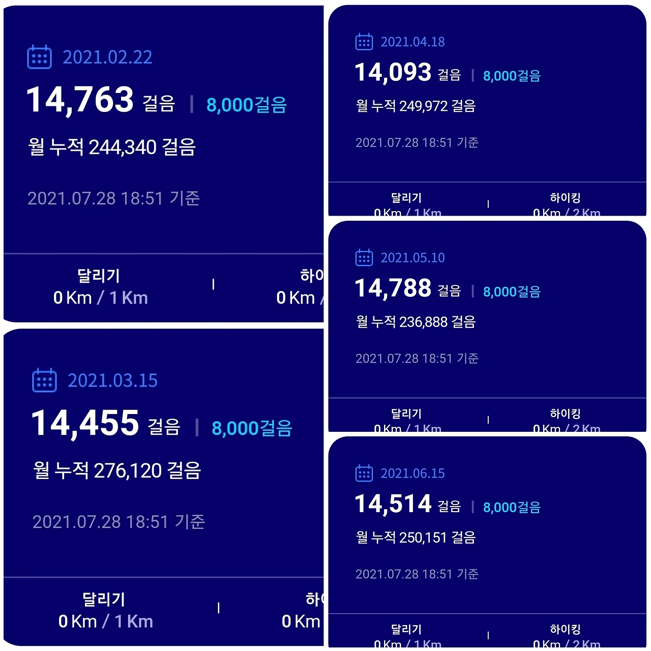 사실 하루에 최소 2천보만 걸으면 된다고 하고 7천보에서 8천보 정도 걸으면 운동이 된단다.