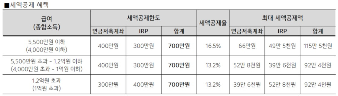 - 국가에서 주는 세액공제 혜택의 한도는 700만원이다.