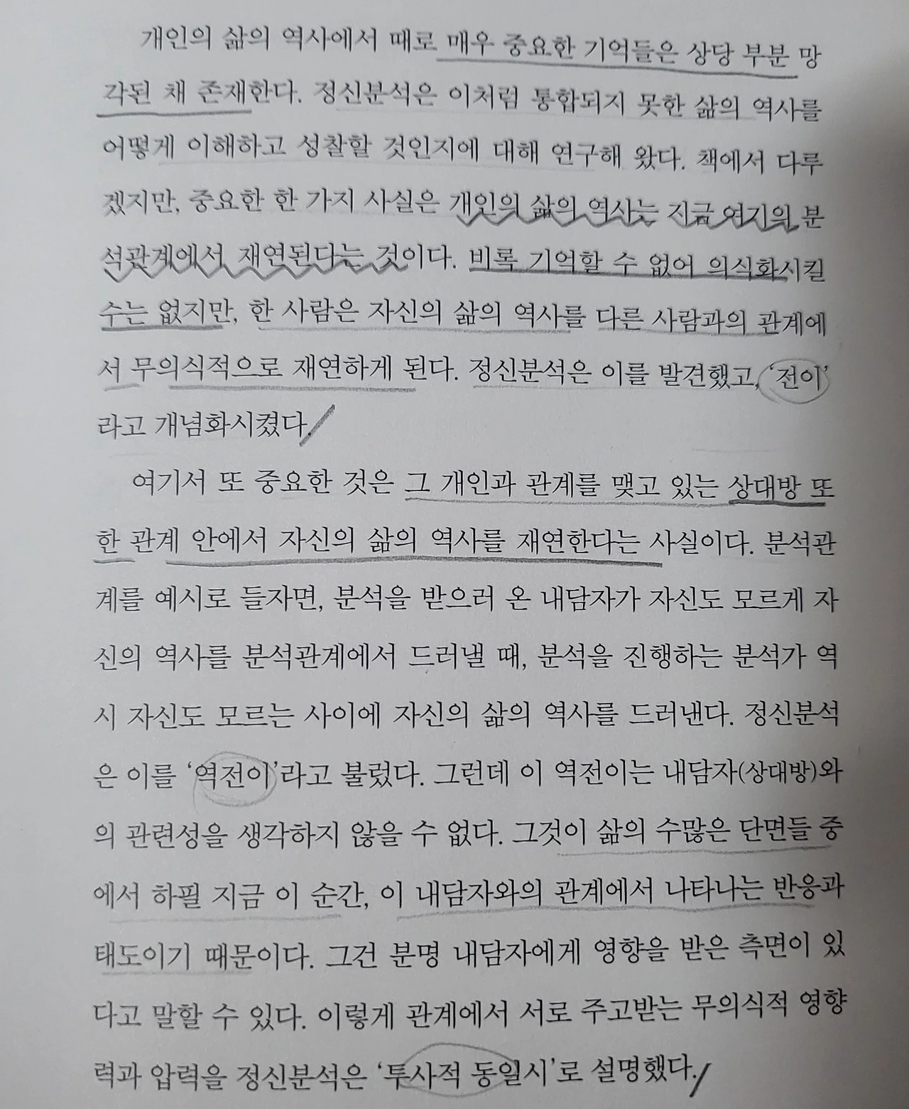 한 사람은 자신의 삶의 역사를 다른 사람들과의 관계에서 무의식적으로 재연하게 된다"