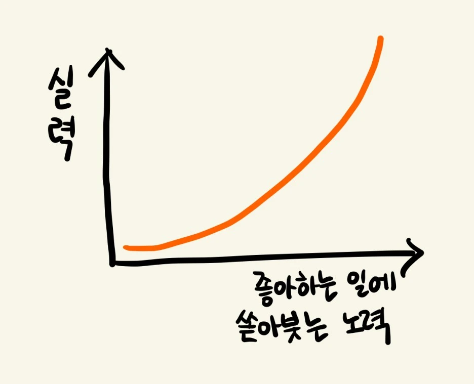 '나의 일'에 대한 끊이지 않는 궁금증과 호기심은 재미로 이어진다. 좋아하는 일은 시간이 걸릴지언정, 좋아하는 일을 계속하다 보면 어쩔 수 없다. 1만 시간의 법칙에 의해, 잘할 수 밖에 없다.