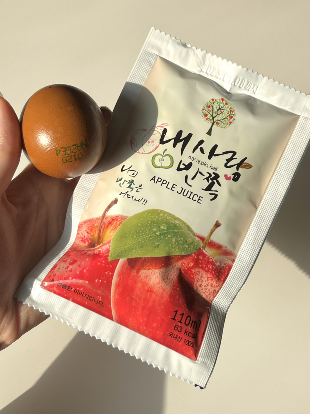 조금 부끄러운 얘기지만 이 메뉴는 매일 아침 엄마가 나를 위해 직접 챙겨주는 것이다. 이제는 알아서 챙겨 먹을 때도 됐는데 서른 줄이 되어도 아침에 부지런하기란 늘 힘이 든다. 엄마는 나를 대신해 눈을 뜨자마자 물을 올려 달걀을 삶고 곁들일 만한 과채즙을 살뜰히 챙겨준다. 사과즙, 양배추즙, 석류즙, 도라지즙을 지나 이제는 사과즙의 차례가 다시 돌아왔다.
