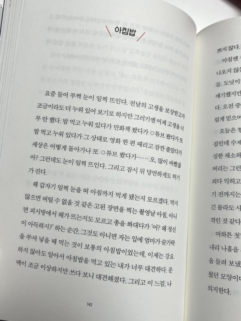 (+) 2주간 배달의민족에서 출간한 <요즘 사는 맛>을 읽으며 짧은 한 끼 단상을 적는 밑미 리추얼에 참여하게 되었어요. 오늘 읽은 #요즘사는맛 한 챕터는 박정민 배우님의 <아침밥>. 저와는 극과 극인 탄수화물러스한 아침 식사를 하는 습관이 재미있었네요. 그리고 ‘자식의 아침밥’에 대한 엄마들의 걱정은 역시 다 비슷하구나 하는 생각도 했어요. 잘 챙겨 먹는 걸로라도 효도해야지! (이미 불효녀)