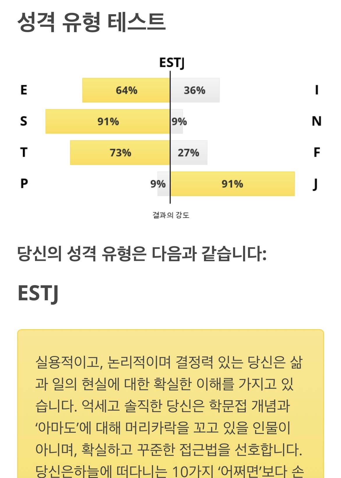 일단 우리 자매의 최근 성격 유형 테스트 결과를 공개한다.