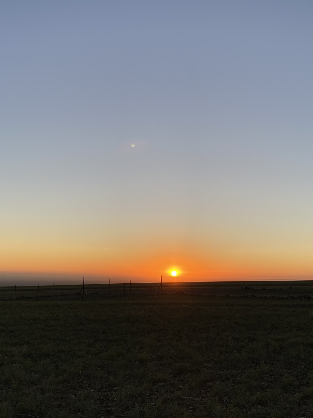 그렇게 정신을 가다듬고 하늘을 보니 지평선 끝에서 태양이 뜨고 있었다. 한반도의 삼면이 바다로 둘러싸인 나라에서 사는 나에게 지평선에서 떠오르는 해를 보는 경험은 어색하다.