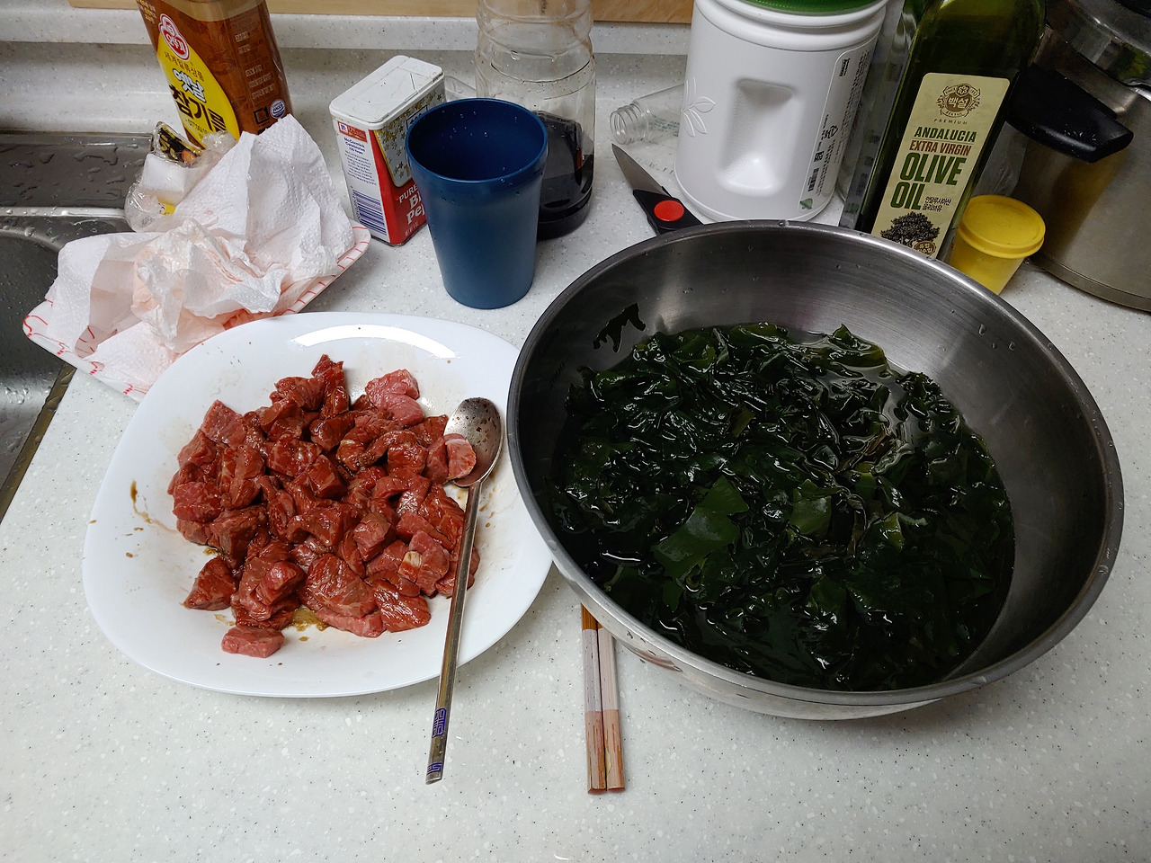 미역국을 끓이면서 가장 놀라웠던 것은 계속 불어나던 미역이다.
