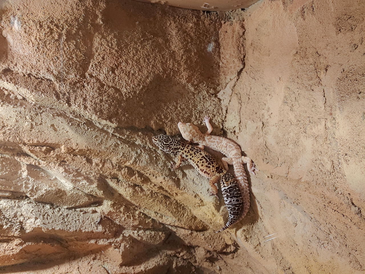 그중 한 마리는 벽색깔과 비슷해서 표범무늬의 다른 한 마리가 없었다면 저기에 있는지도 몰랐을 것이다.
