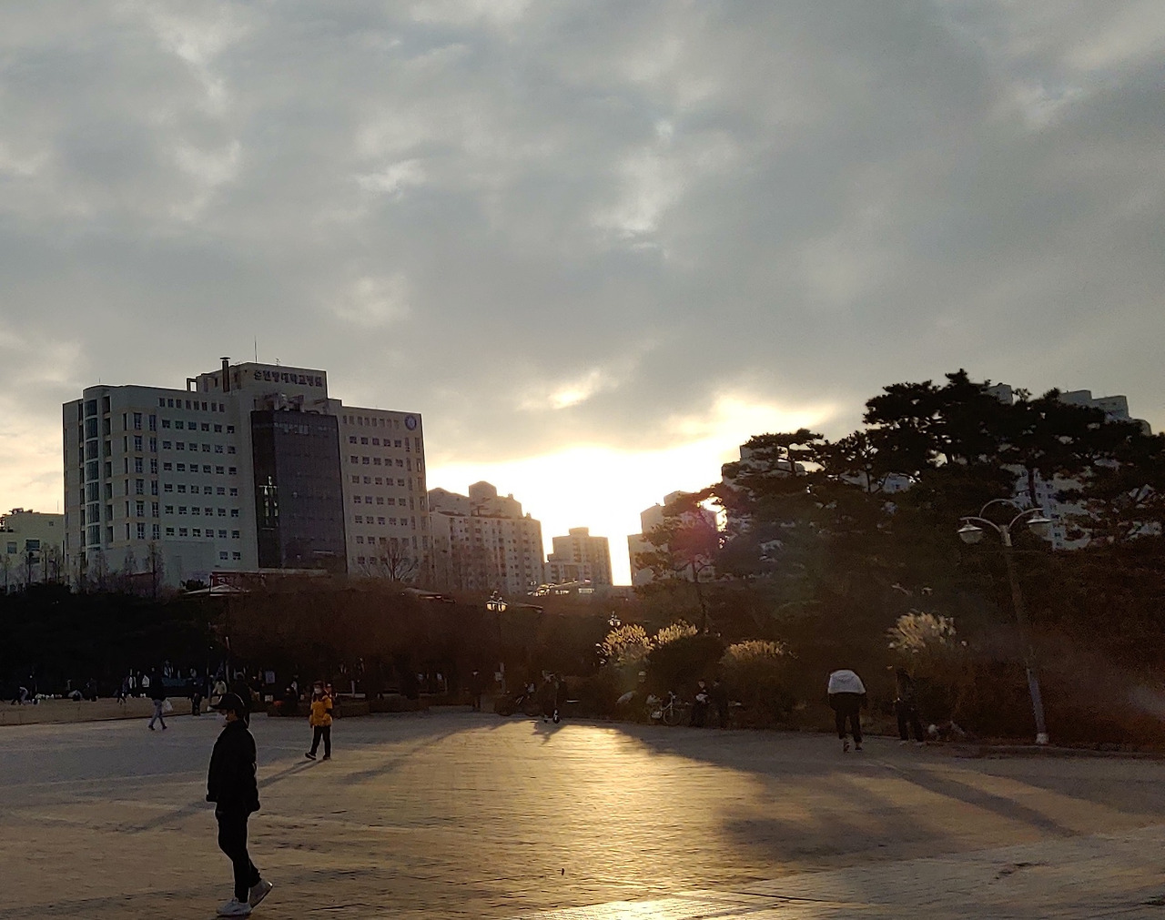 따뜻한 겨울 오후, 공원에 사람들이 한가득이다.