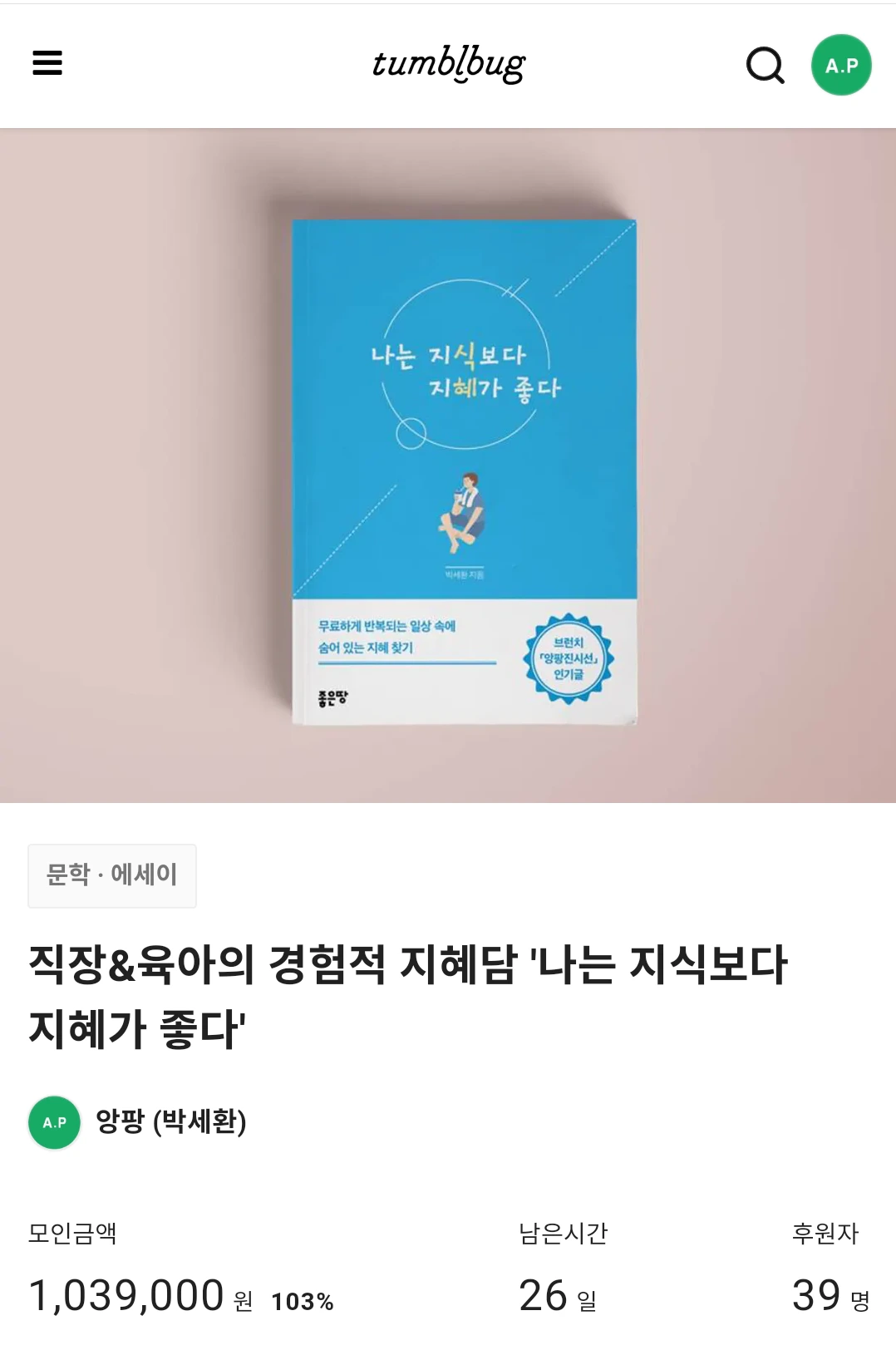 텀블벅은 창작자를 위한 크라우드 펀딩 플랫폼이라 단순히 책 출판만 있는 것이 아니라 음반도 있고 영화제작도 있다. 한편 제작하는데 많은 금액이 필요할 텐데 어떤 프로젝트는 목표금액을 50만 원 정도로 낮게 설정하기도 한다.