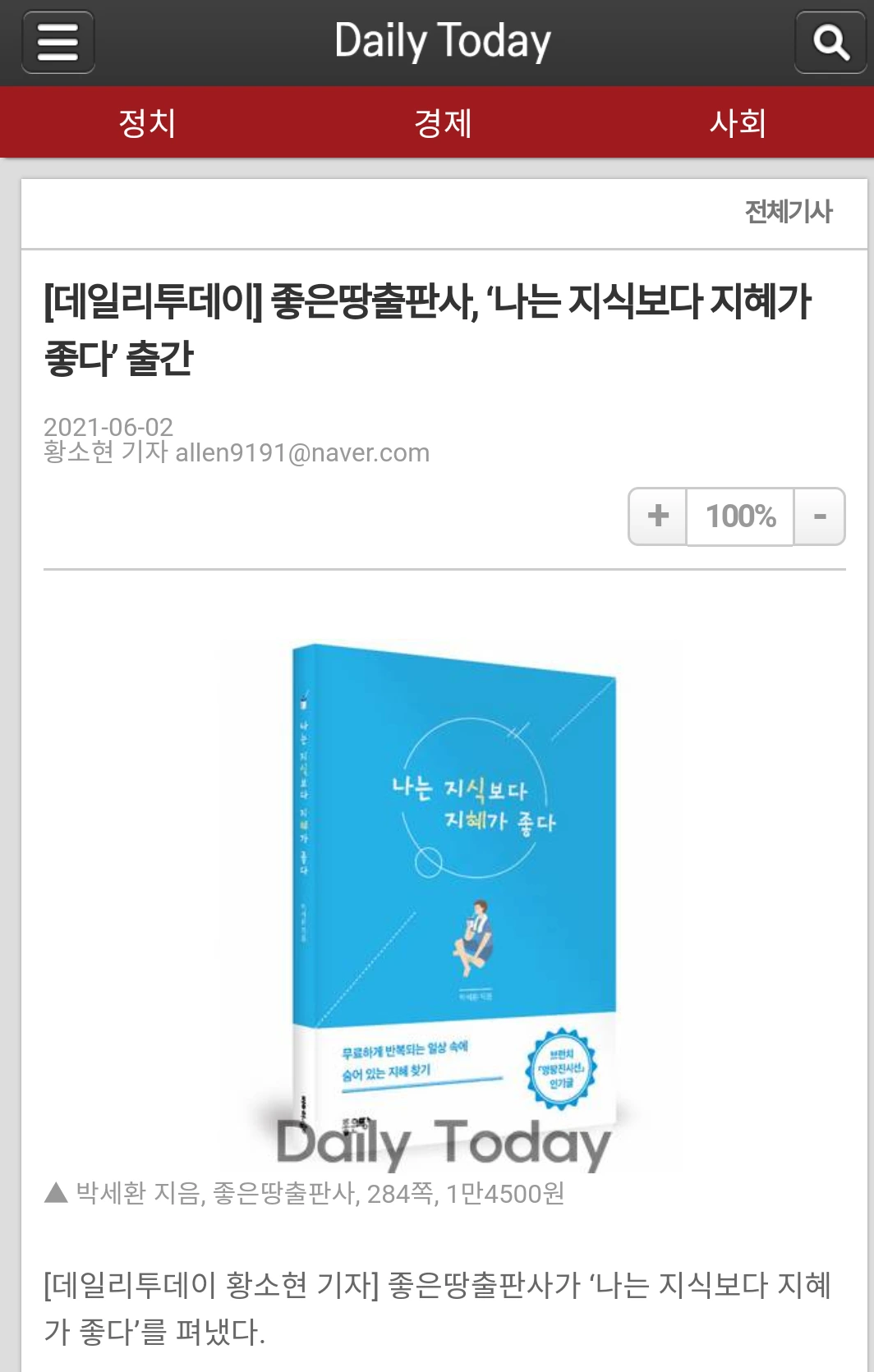 인터넷 뉴스에 나온 책 소개 기사를 보며 실감했다.